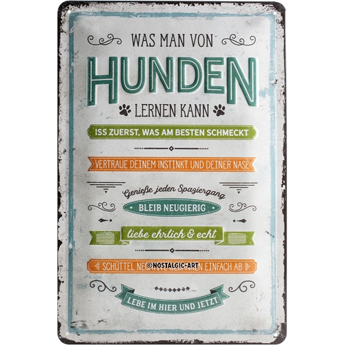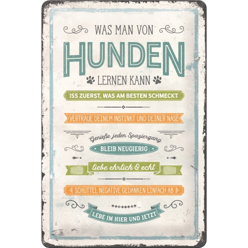 Blechschild "Was man von Hunden lernen kann" 20 x 30