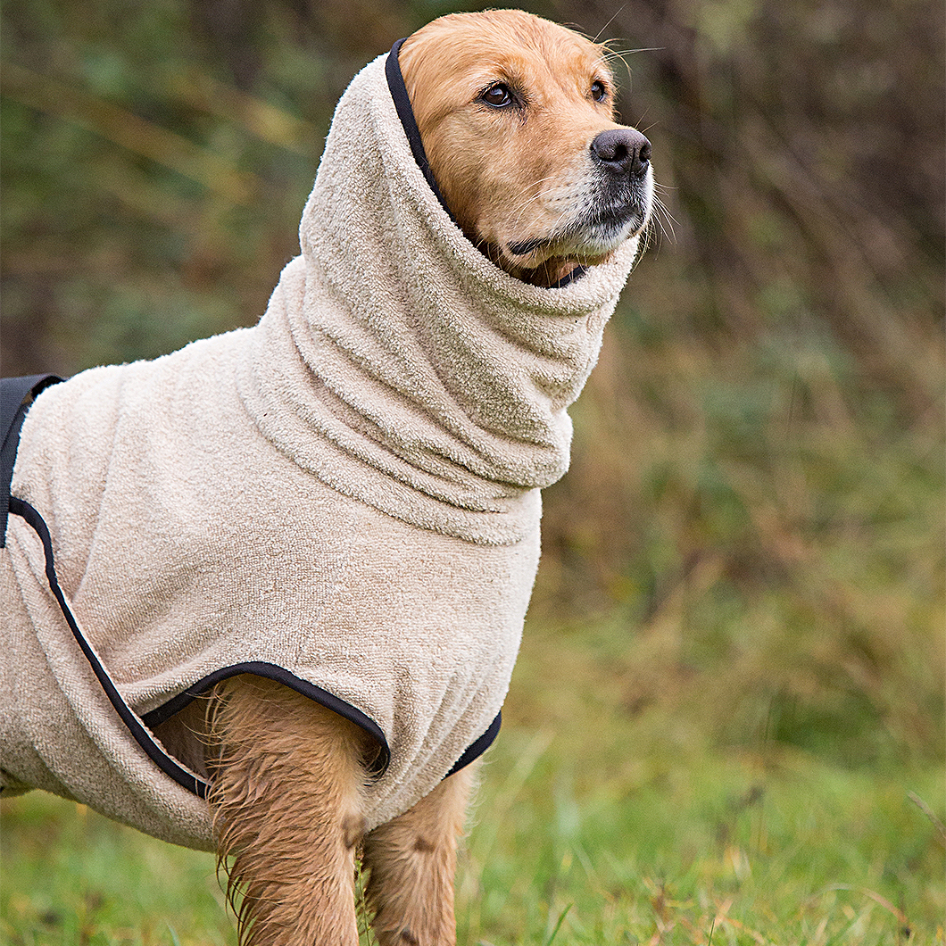 Es gibt nichts Besseres, als ein hochwertiges Frottee aus 100% Baumwolle, um den Hund abzutrocknen und die Feuchtigkeit vom Hund wegzuleiten.