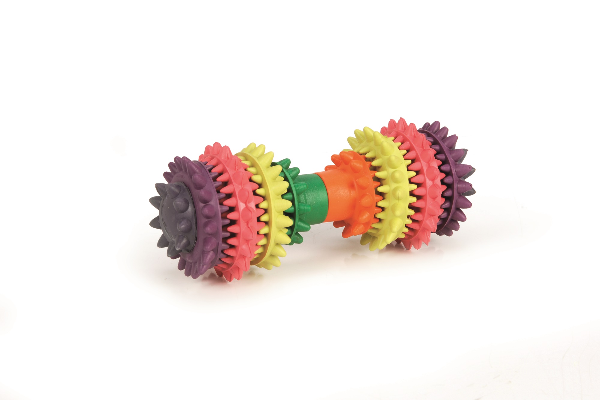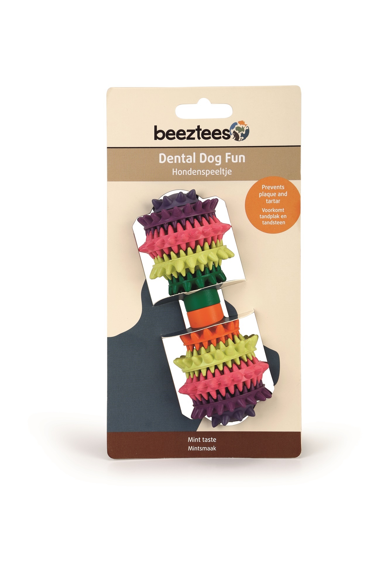 Diese Hantel enthält verschiedene Gummizähne, die dafür sorgen, dass das Zahnfleisch des Hundes spielerisch massiert wird. Dies trägt zu einer guten Durchblutung und einem gesunden Zahnfleisch bei. Darüber hinaus sorgt dieses Hundespielzeug dafür, dass Plaque und Zahnstein reduziert werden. Um die Hantel für Deinen Hund noch schmackhafter zu machen, wurde der Hantel Minzgeschmack hinzugefügt. Ein schönes Detail sind die fröhlich bunten Regenbogenfarben der Hantel.
